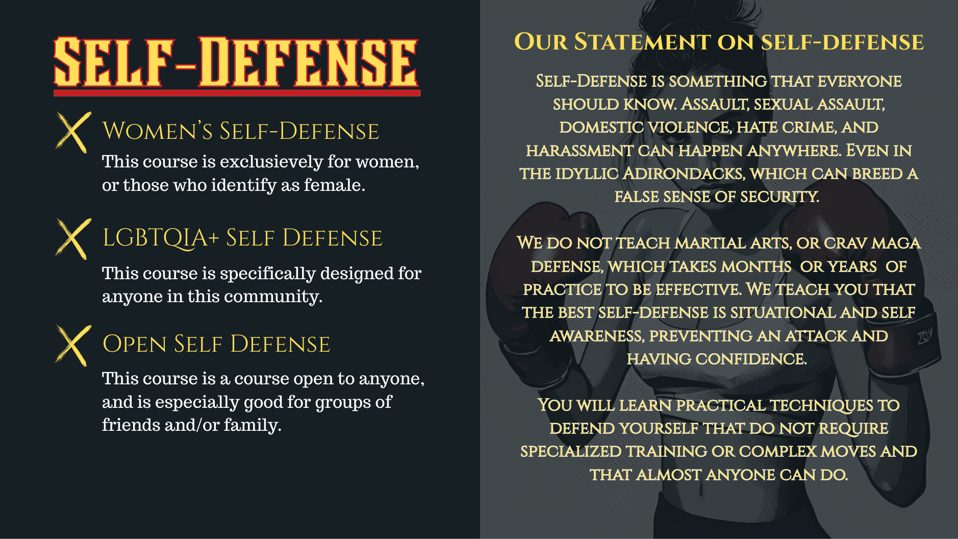 Book Your First Experience! Book A Class! - Drop-In Day /Week Pass Book A Class! Book A Class! Sign Up For A Membership Book A Class Book Personal Training Session Self Defense Workshop Contact Us Sign Up for a Membership